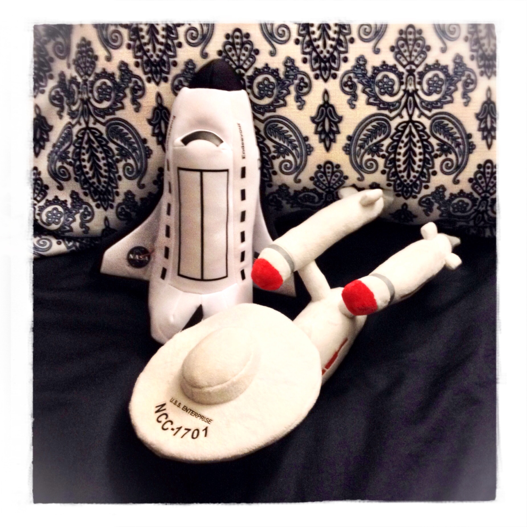I bought the stuffed Endeavour to go with the stuffed Enterprise I keep on my bed. Of course I did.
