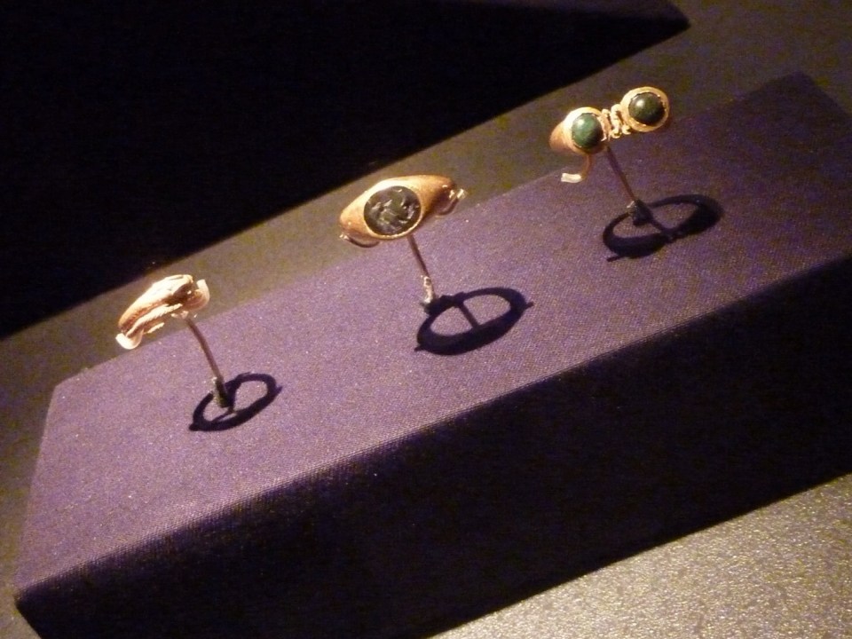 Ring, Jasper Intaglio Ring, Ring with a Pair of Emeralds, all Gold, all 1st century BC – 1st century AD