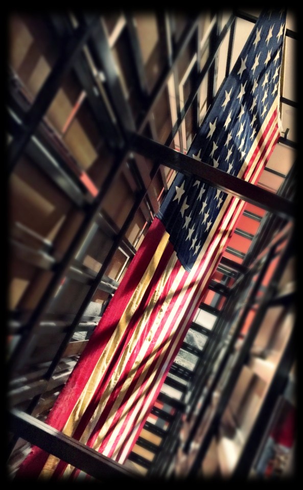This American flag flew over the Justice Department internment camp at Crystal City.